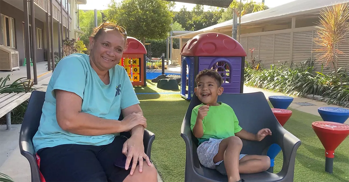 “Every trip is a happy memory. Gaulai’s sort of… he’s comfortable, and we have stayed in motels before for a couple of his appointments, but he’s just screaming and he doesn’t settle. Here, he’s just relaxed because it’s a family environment here. The park, the kitchen, and there’s other kids around. Even the staff, he even gets along with the staff!”